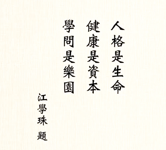 看到一則回顧北一女校史的影片,其中出現了江學珠校長的墨寶:「人格是生命、健康是資本、學問是樂園!」 我的北一女同學、學姊、學妹們,雖然年紀差距頗大,但是,在她們身上通常有一些共通的特質,我猜想,我們或多或少都烙印了江學珠校長所打造的綠園DNA吧!
